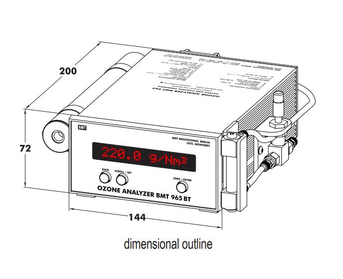 德國 BMT 965 BT是便攜式儀器。可以從后部入口和出口管道的配件(連接到Catalyzing Cartridge)以及信號連接器和隔離的RS-232接口。因此,總深度約為250mm。