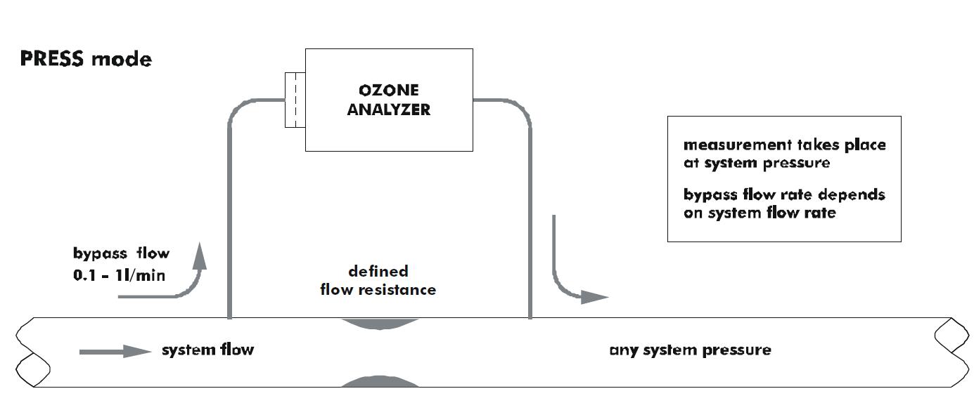 兩種連接分析儀到臭氧系統(tǒng)的模式,全流量和旁路,當(dāng)然也需要分析儀配備一個內(nèi)部壓力傳感器,這是抵抗臭氧。壓力傳感器的壓力范圍,以及內(nèi)部微處理器執(zhí)行的壓力補償范圍,必須與臭氧系統(tǒng)中實際可能發(fā)生的壓力范圍相匹配。我們提供的壓力范圍為0.5-1.5至0.5-4.0 bar。